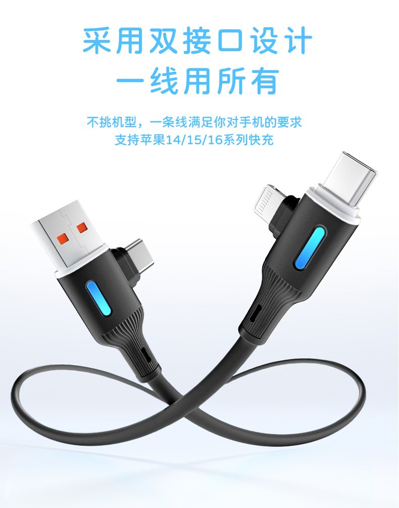 型號(hào):LC-517 顏色:黑色 材質(zhì):硅膠+純銅 充電接口:Type-c/Lightning 長(zhǎng)度:1米 包裝尺寸:215x75x19mm 整箱數(shù)量:100/箱 產(chǎn)品重量:50g