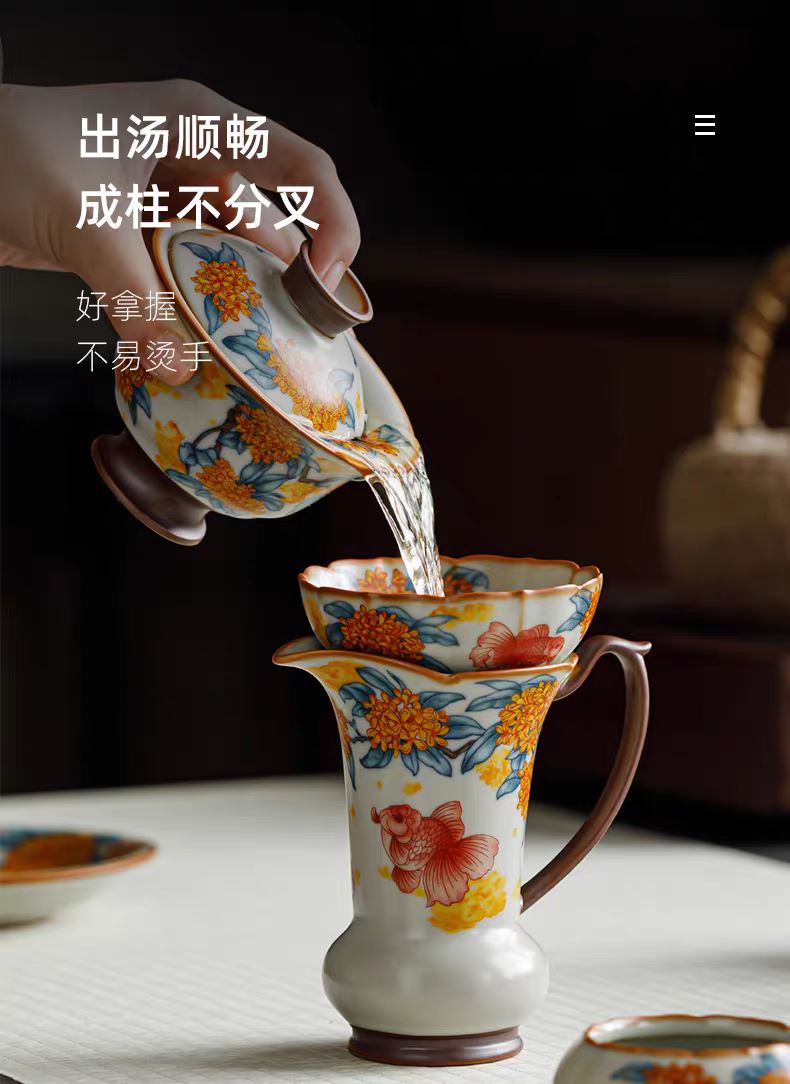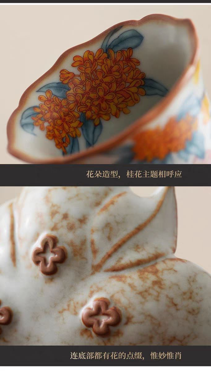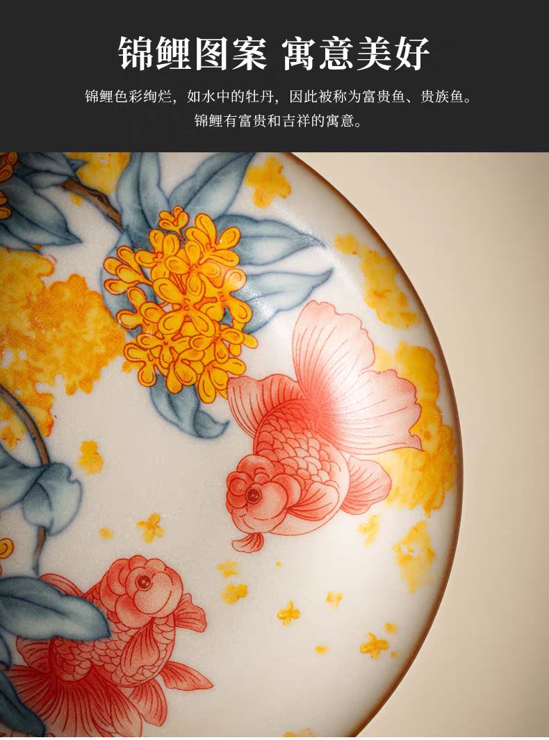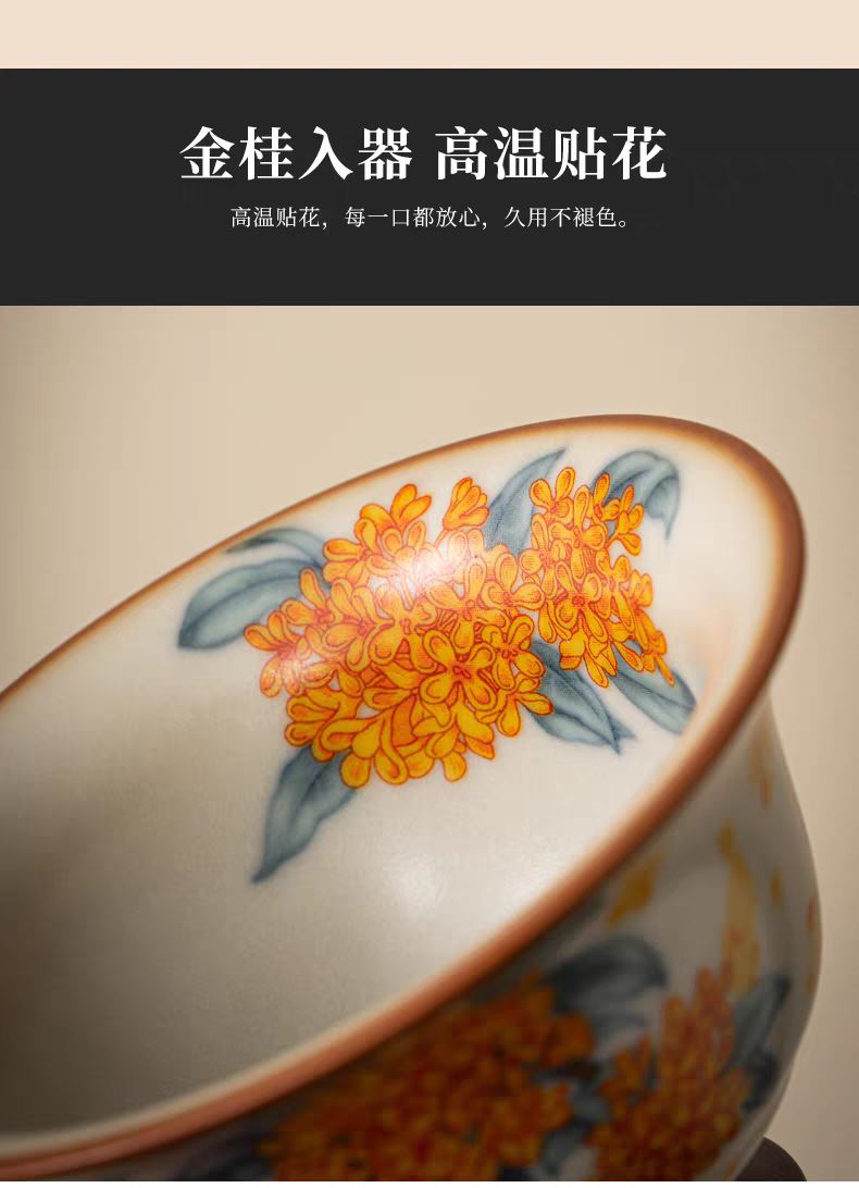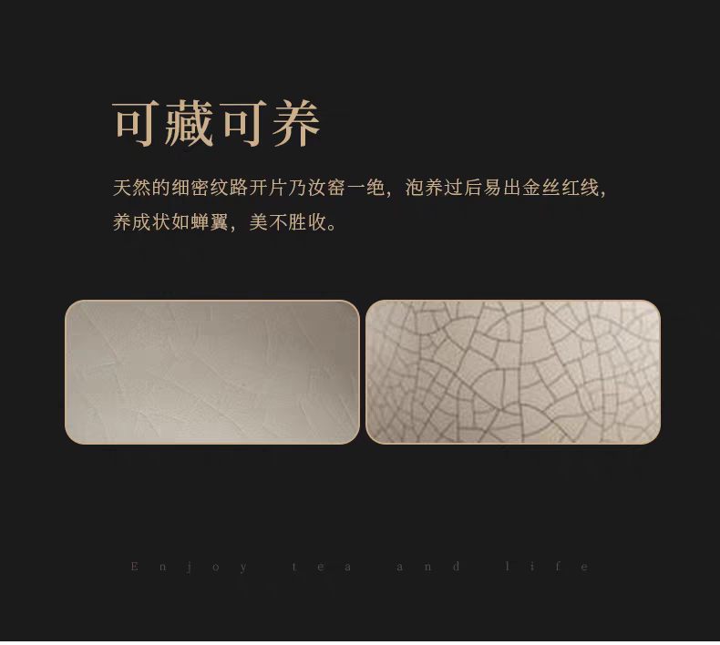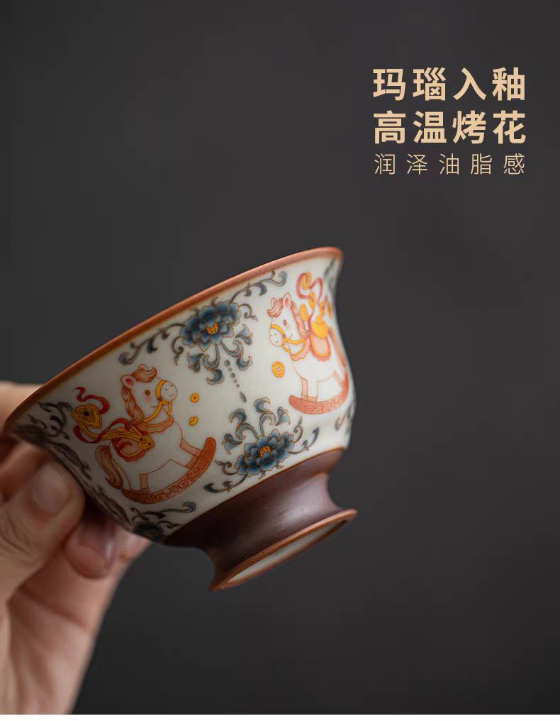 推薦說明:馬年開門紅禮品,馬上有錢,馬上有福,金鯉桂花,寓意金貴,連年有魚。。內(nèi)外皆有畫面?,旇胗?,蟬翼開片,家有千財(cái)萬貫,不如汝窯一片。亞黃汝瓷,技術(shù)新品,采用高價(jià)優(yōu)質(zhì)瓷土,紫口鐵足。立體浮雕杯身。杯身開片,可養(yǎng)瓷