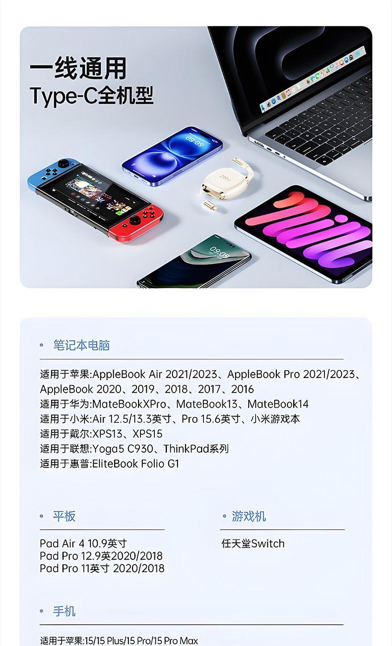 領臣240w磁吸伸縮數(shù)據(jù)線LC-528