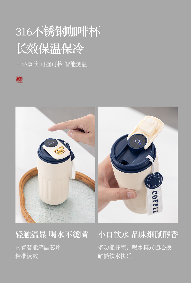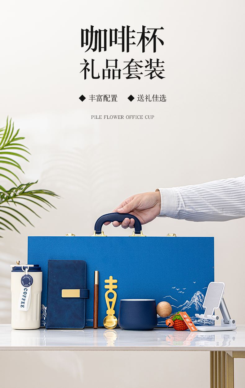 咖啡杯:13.5*7.4厘米340ml 保溫咖啡杯:6.7*15厘米410m 禮盒 :48*12*23厘米 智能保溫杯長(zhǎng)時(shí)間保溫保冷,陶瓷高溫?zé)疲瑹o(wú)鉛鉻,品質(zhì)保證,商務(wù)實(shí)用,甄選好禮。