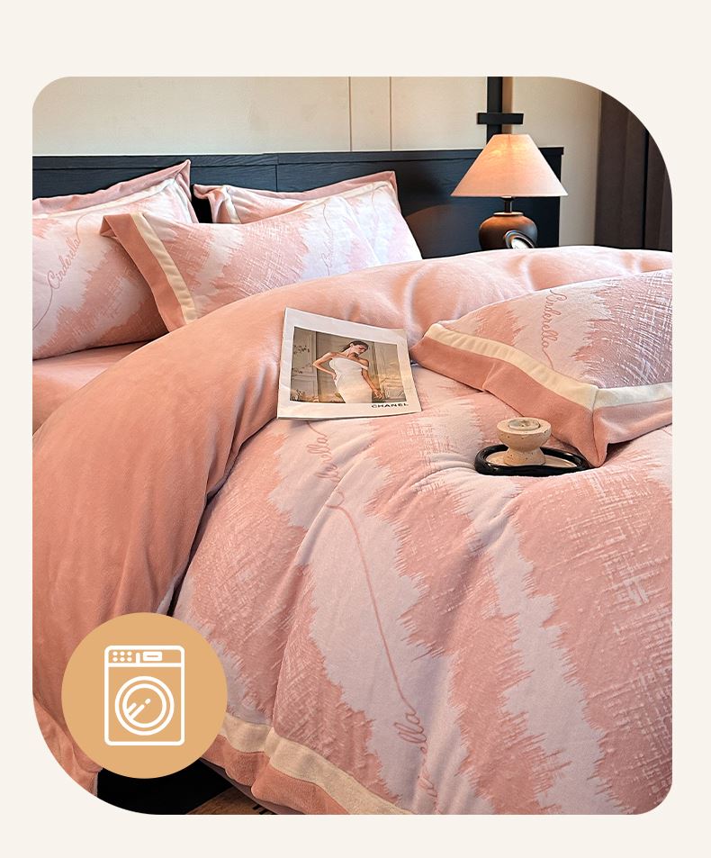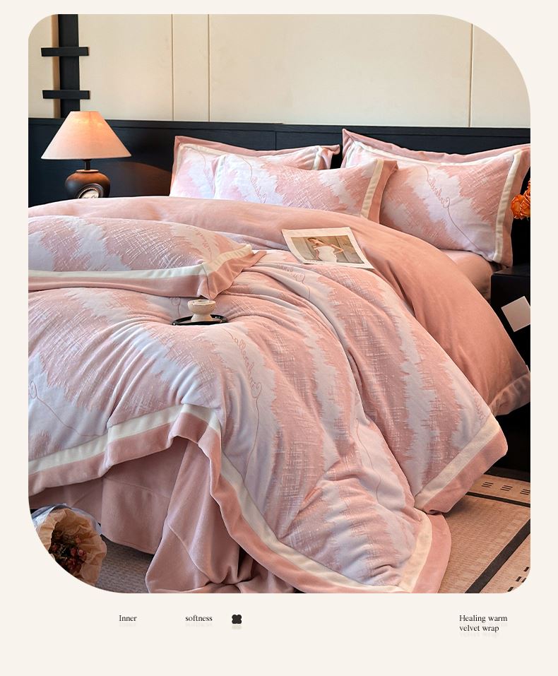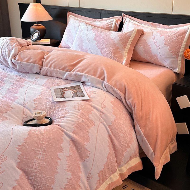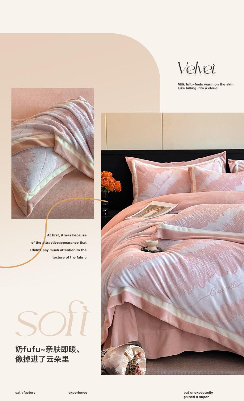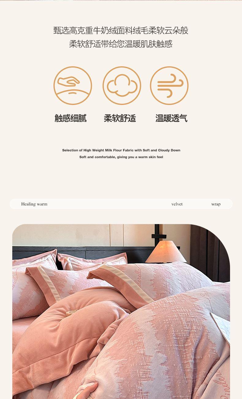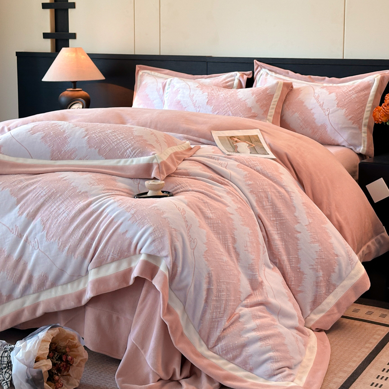 百麗安娜牛奶絨全消光四件套悠暇系列--意境粉