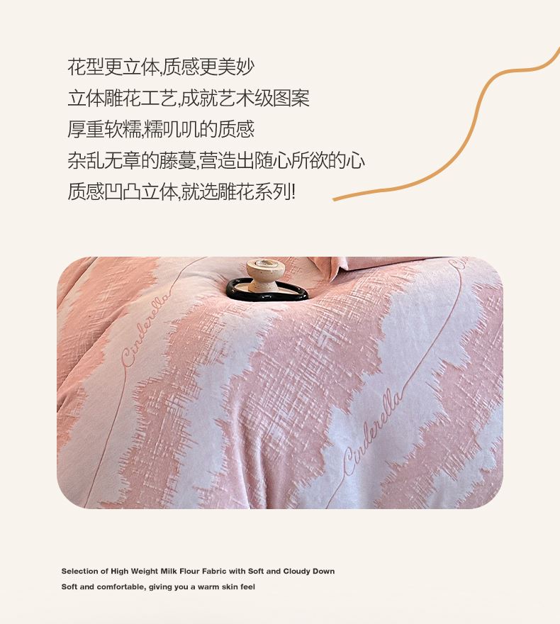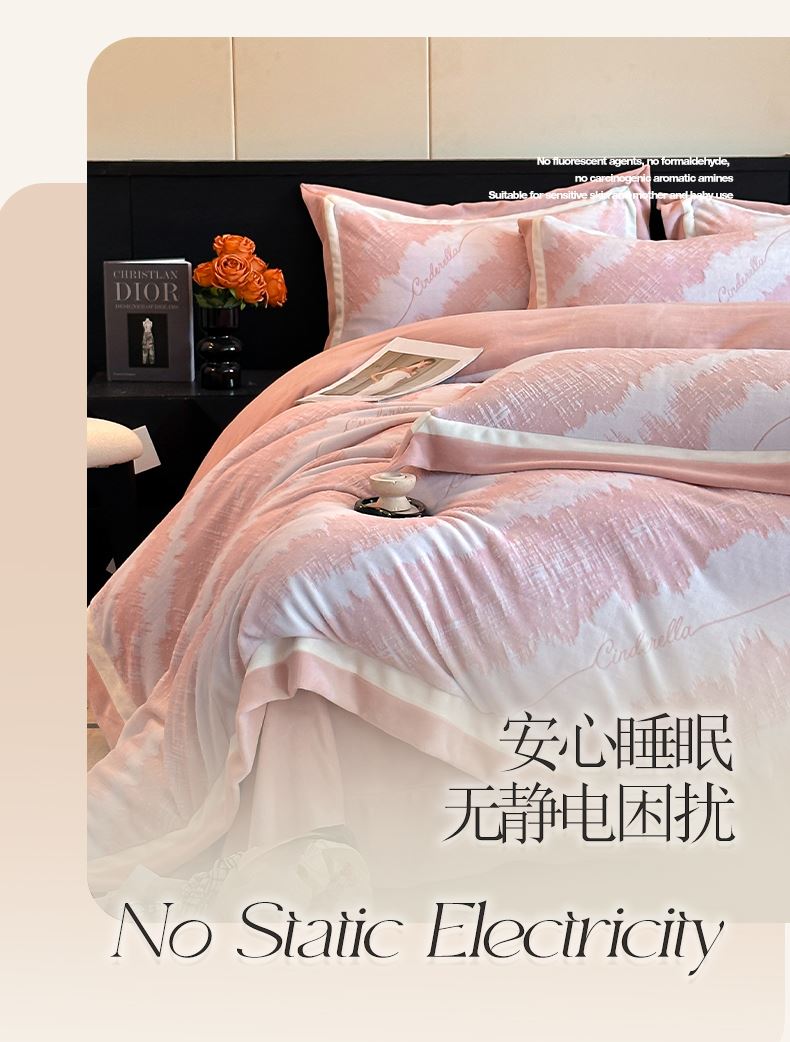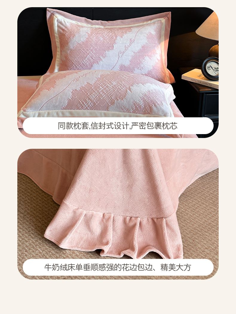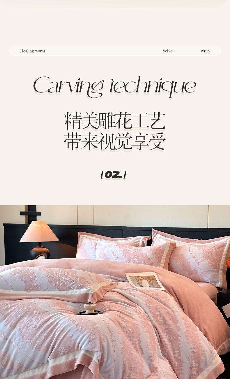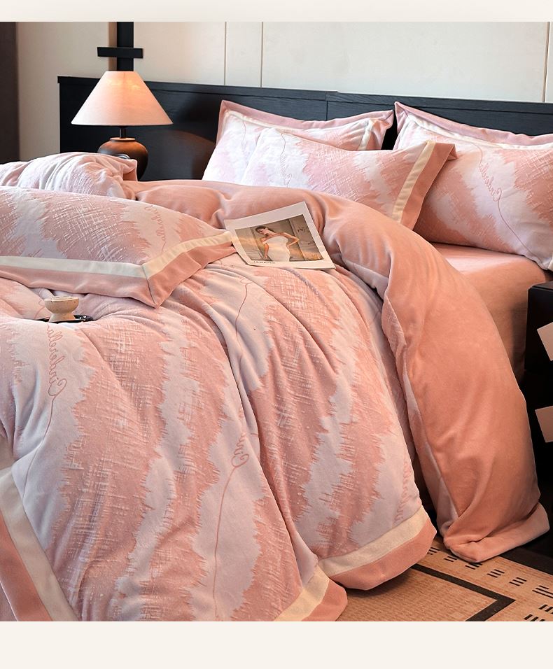 百麗安娜牛奶絨全消光四件套悠暇系列--意境粉