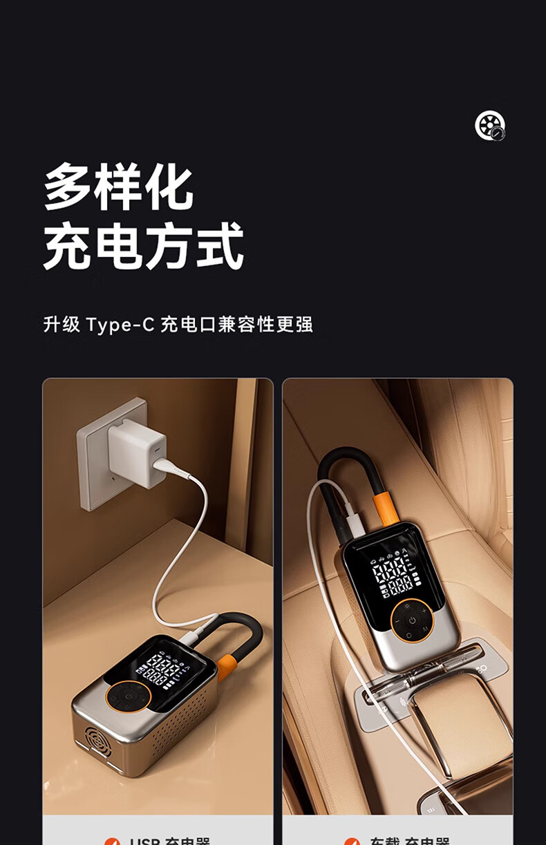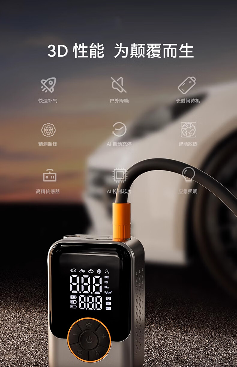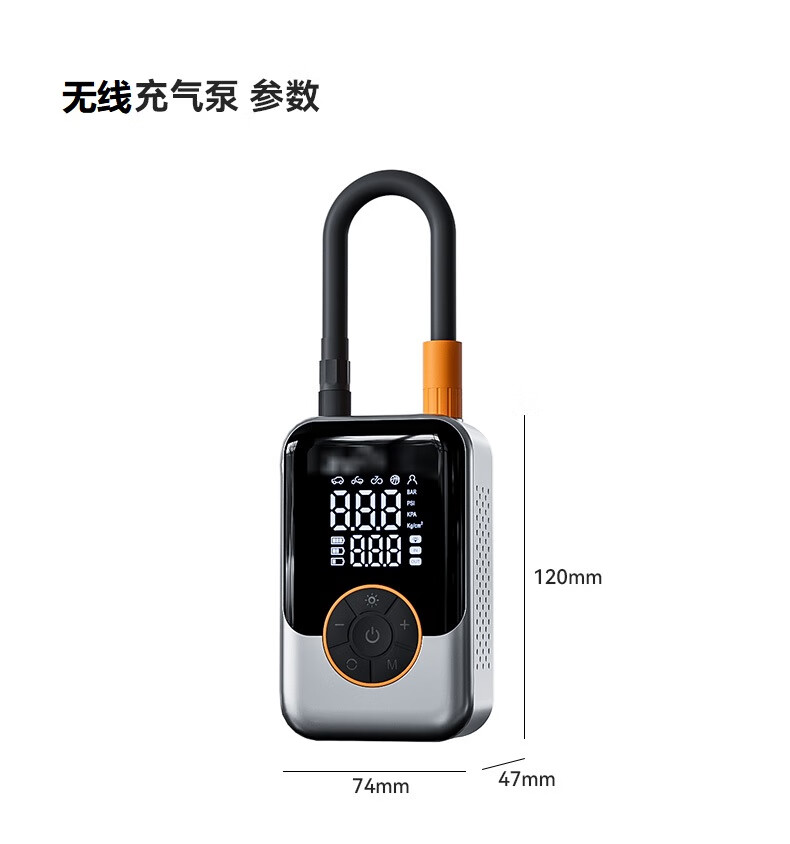 產(chǎn)品顏色:黑色 類型:無線款 材質(zhì):ABS 充電時長:3-5小時 電池容量:2000mAh*2 工作時長:15-30分鐘 產(chǎn)品配件: 球針*1 充氣泵 *2 法嘴*1 type-c充電線*1 充氣管*1 適用:汽車/電動車/球類/自行車可用,2.5個壓或以下的輪胎車型都適用 產(chǎn)品尺寸:74*47*120mm 包裝尺寸:97x84x136mm 整箱數(shù)量:20 單品重量:490g